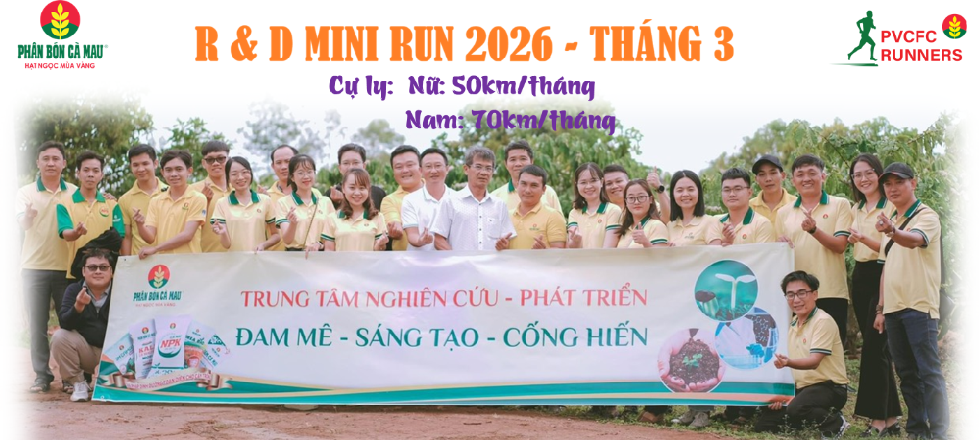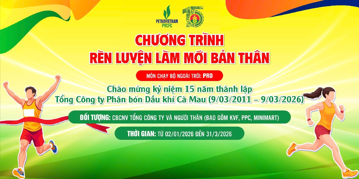 PRO RUNNERS - CHẠY BỘ - LÀM MỚI BẢN THÂN CHÀO MỪNG KỶ NIỆM 15 NĂM NGÀY THÀNH LẬPTỔNG CÔNG TY PHÂN BÓN DẦU KHÍ CÀ MAU (09/03/2011 – 09/03/2026) - THÁNG 3 01/03/2026 - 31/03/2026