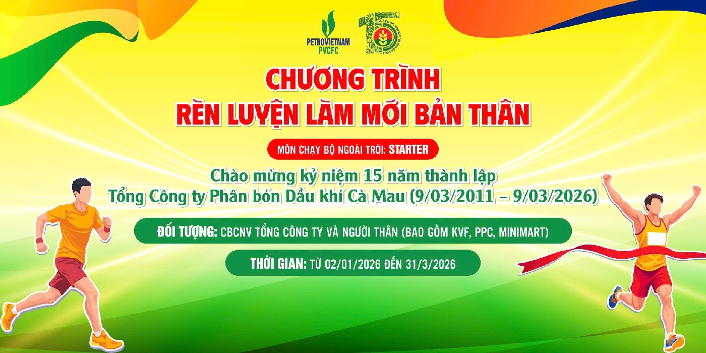 STARTER RUNNERS - CHẠY BỘ - LÀM MỚI BẢN THÂN CHÀO MỪNG KỶ NIỆM 15 NĂM NGÀY THÀNH LẬP TỔNG CÔNG TY PHÂN BÓN DẦU KHÍ CÀ MAU (09/03/2011 – 09/03/2026) - THÁNG 3 01/03/2026 - 31/03/2026