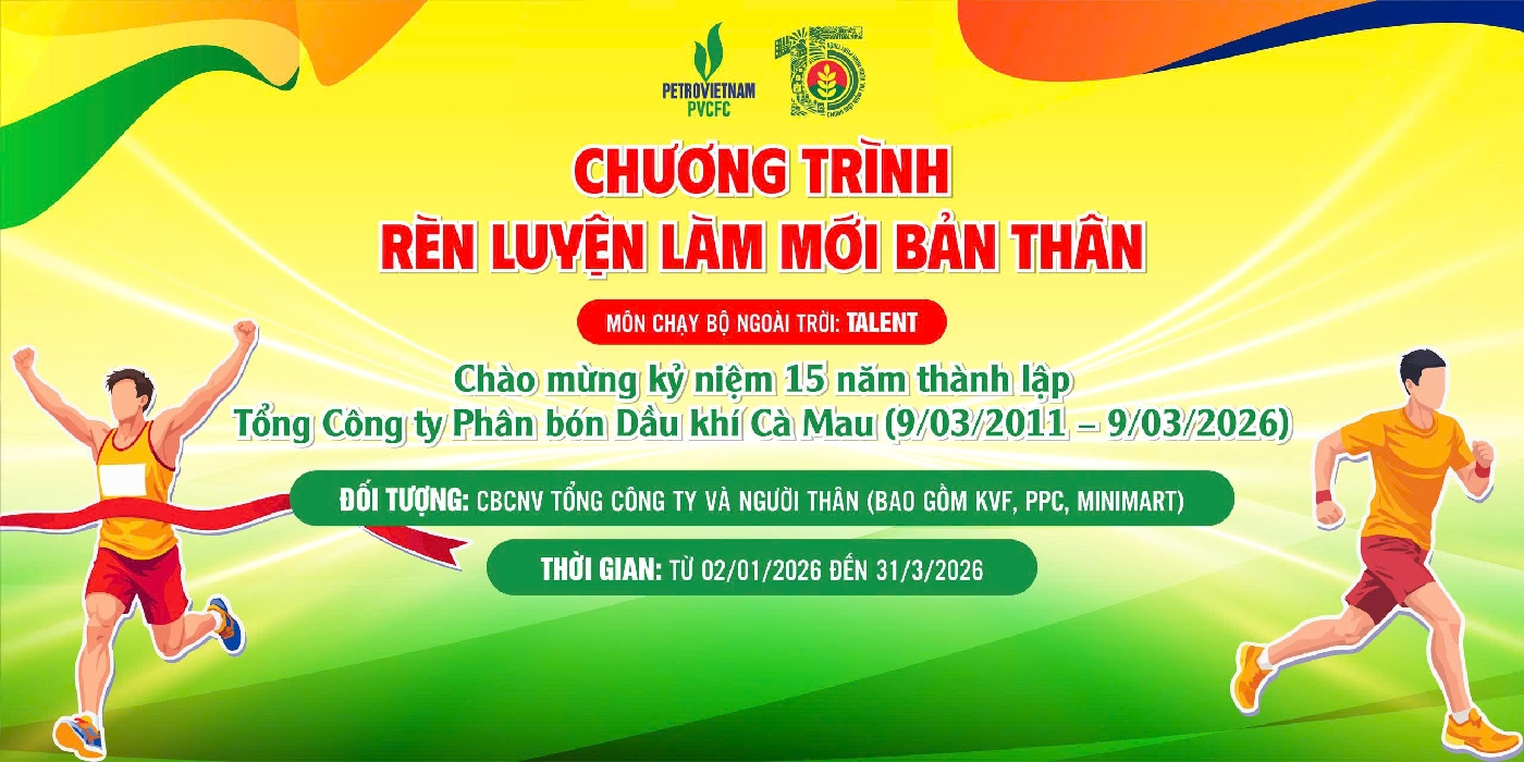 TALENT RUNNERS - CHẠY BỘ - LÀM MỚI BẢN THÂN CHÀO MỪNG KỶ NIỆM 15 NĂM NGÀY THÀNH LẬPTỔNG CÔNG TY PHÂN BÓN DẦU KHÍ CÀ MAU (09/03/2011 – 09/03/2026) - THÁNG 3 01/03/2026 - 31/03/2026