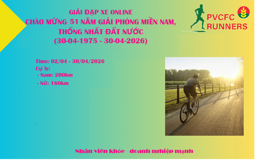 GIẢI ĐẠP XE ONLINE CHÀO MỪNG 51 NĂM GIẢI PHÓNG MIỀN NAM, THỐNG NHẤT ĐẤT NƯỚC (30-04-1975 - 30-04-2026)